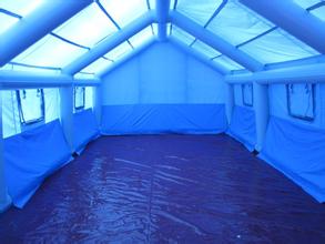 一 框架式充氣帳篷 a.三角形 b.弓形 ⒉整體式充氣帳篷 ⒊軍用充氣帳篷。 二、材質 充氣帳篷采用氣柱框架形式,氣囊采用PVC涂層布高頻熱合而成,電動泵或腳踏泵充氣即可快速成型。整體式充氣帳篷側面墻體與篷蓋合為拱體,兩端夾層按需開啟門窗,形成整體充氣保溫隔音的特種帳篷;具有剛性大,穩定性強,隔音,保溫,成型及回收速度快等特點。